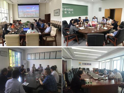 教研室与调研企业都对本次活动高度重视。在四川能投鼎盛锂业公司,教研室与邓自平董事长就企业生产情况、技术需求等方面进行了交流,并详细落实了认识实习、生产实习、卓工班毕业设计等工作。邓自平董事长代表企业表示非常支持实习工作并十分希望能与四川大学开展“产学研”合作。紧接着,教研室赶赴眉山第一污水处理厂进行调研,在安排好实习相关工作外,蒋炜教授、蒋绍志教授还就污水处理厂提出的技术问题进行了细致解答。在简单用过工作餐后,教研组又赶赴金象化工集团进行对接,金象化工集团总裁唐印先生接待了教研组一行,向教研组详细介绍了集团的发展历程及业务范围,并结合企业实际情况就实习内容进行了调整,双方还就催化剂、尿素高值化利用等方面进行了技术探讨。在新都化工公司,教研组与唐磊总经理就实习具体内容进行了安排。