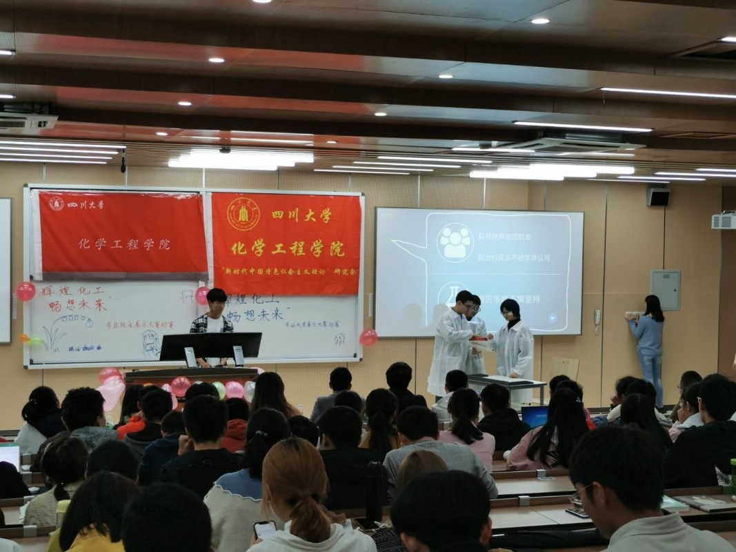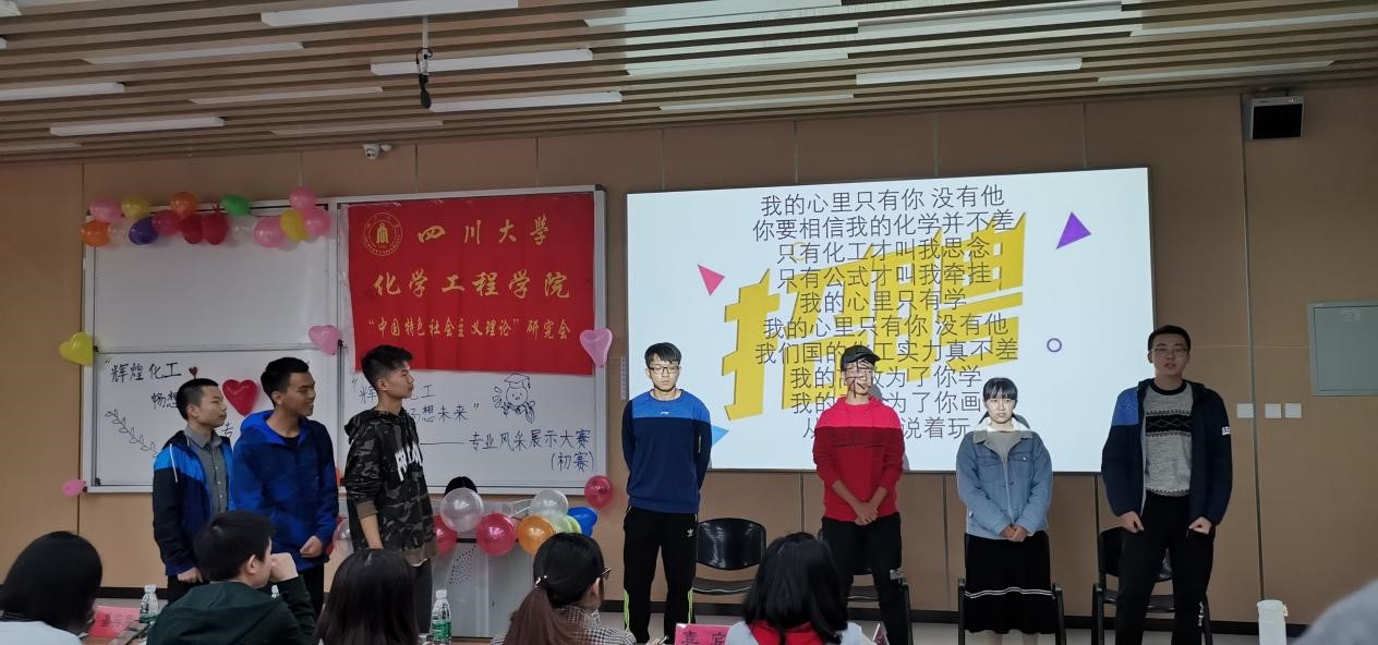 2019年11月10日下午两点,四川大学best365中国官方网站“辉煌化工 畅想未来”展示大赛的初赛在综合楼C座404和405教室如期举行,此次活动由best365中国官方网站“新时代中国特色社会主义理论”研究会(简称“新中会”)实践中心主办,best365中国官方网站团委学生会社团管理部合办。该活动面向2019级best365中国官方网站包括绿色生物与医药和动力装备与安全专业的17个班级。活动分为两部分:辉煌介绍和班级表演,其中每个班级通过PPT介绍化工专业和排演与化工相关的节目,由best365中国官方网站学生会和新中会的部长们组成的评委进行打分评比,最终选出具有表现力和创造力的班级进入决赛。