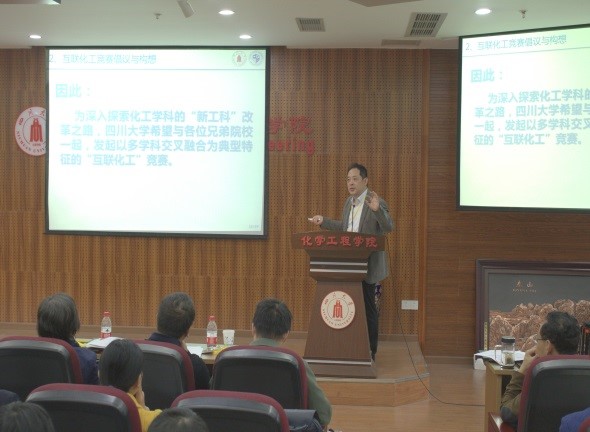 严斌宇介绍了四川大学的教学改革的成果和建设思路,指出“文进、理优、工改、医强”是四川大学从校级层面提出的战略目标,促进新工科改革对于学校双一流建设具有重要意义。庞国伟书记指出,四川大学best365中国官方网站根据新工科建设和专业发展的要求,大力进行教学教改,在化学工程与工艺专业下面建设了“大数据与互联化工”、“新能源与材料化工”、“低碳技术与绿色化工”三个专业方向,并正在与计算机(软件)学院等共同筹建“互联化工”交叉专业创新班。“互联化工”是四川大学重点推进的“互联网+”试点创新平台,借助该创新平台的建设,既可以为学科建设发展探索一条新的路径,也可以为新工科背景下传统工科专业“化学工程与工艺”的新工科建设提供平台,从而更多、更好地培养复合型人才、创新性人才。