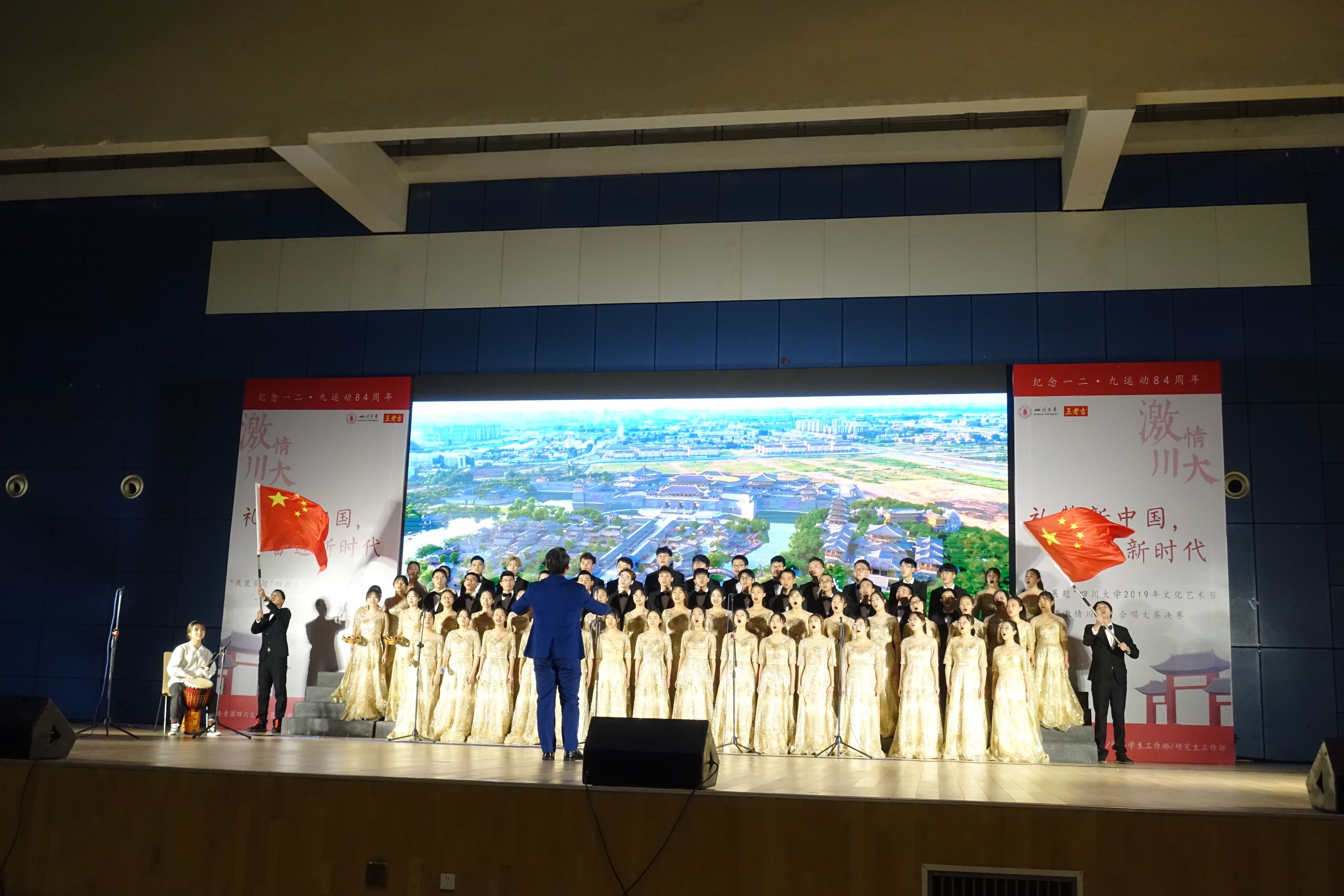 12月7日晚,为了纪念“一二·九”运动84周年,展现川大学生热爱祖国、积极向上的精神风貌,“凤凰展翅”四川大学2019年文化艺术节“激情川大”合唱大赛决赛在江安校区体育馆隆重举行。我院学生合唱团以第8名的优异成绩荣获大赛三等奖。