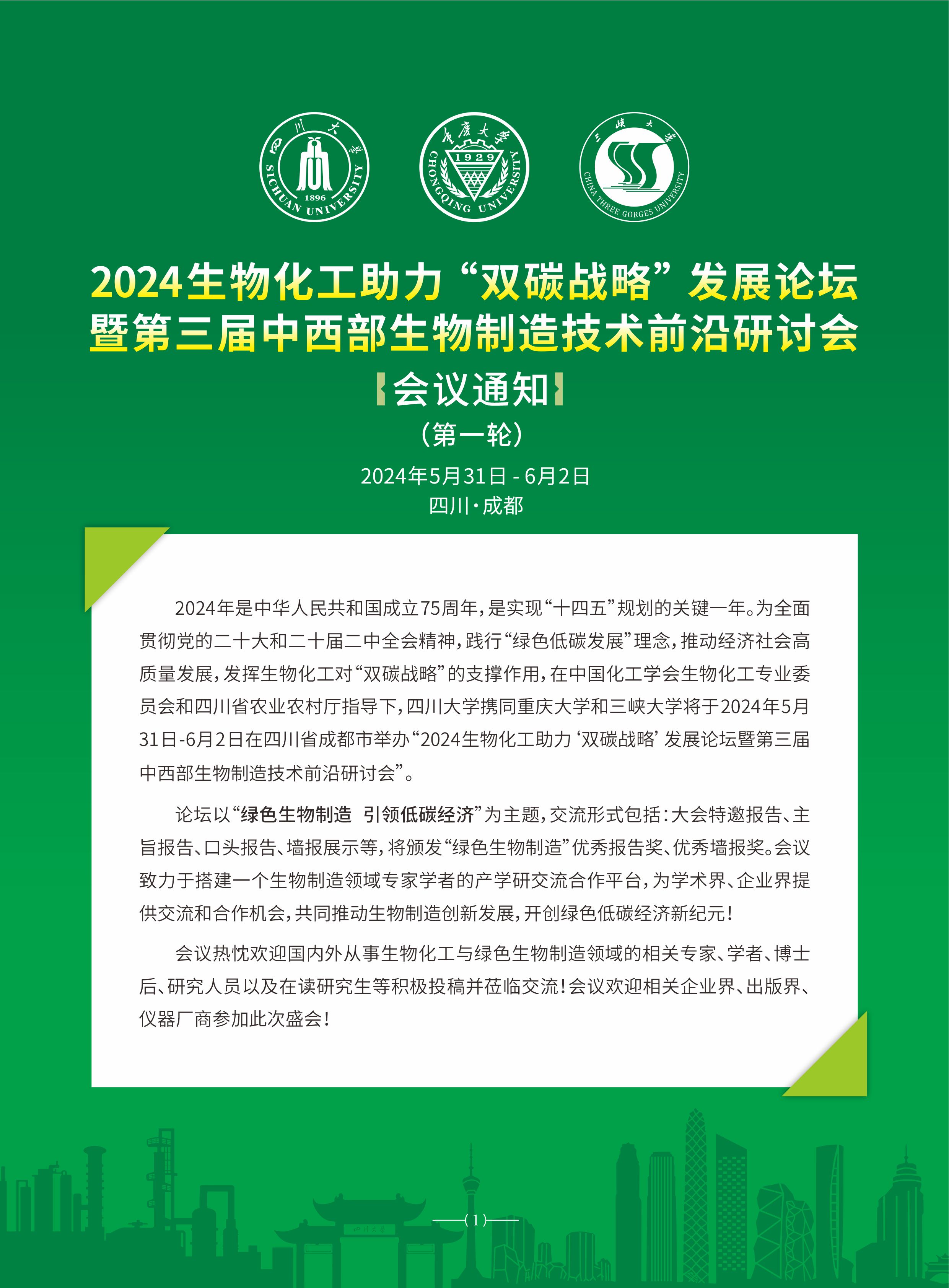 2024生物化工助力“双碳战略”发展论坛暨第三届中西部生物制造技术前沿研讨会(第一轮通知)