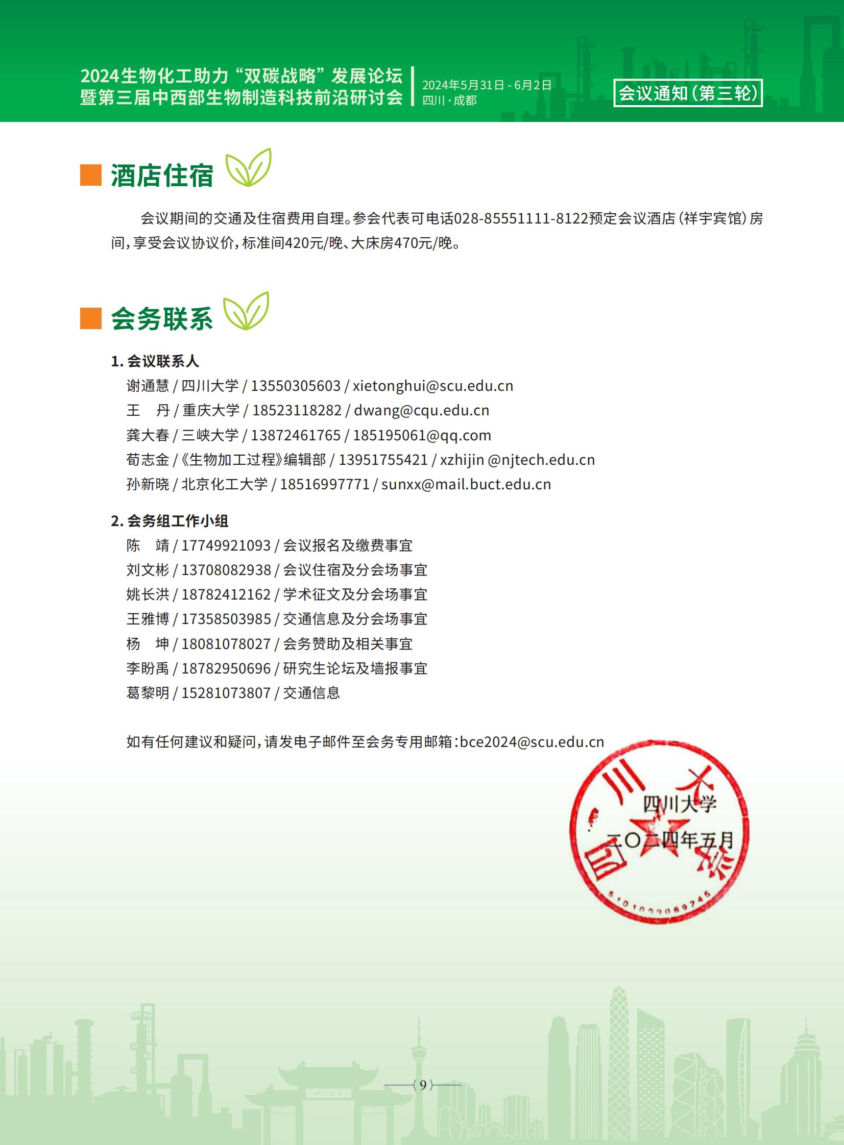上一条:“湖北宜化-四川大学联合创新研究中心”2024年开放课题申请指南 下一条:2024生物化工助力“双碳战略”发展论坛暨第三届中西部生物制造科技前沿研讨会(第二轮通知)