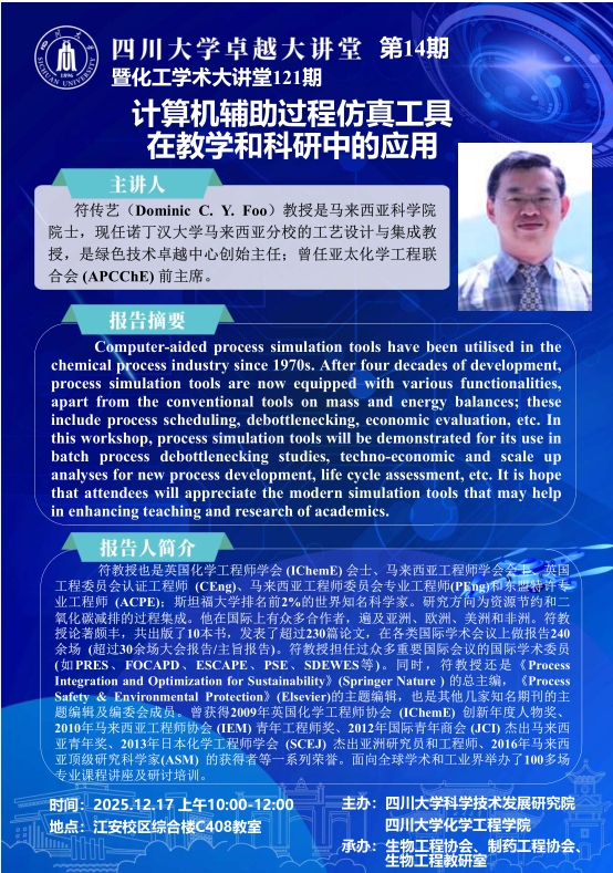 【卓越大讲堂】-化工学术大讲堂-计算机辅助过程仿真工具在教学和科研中的应用