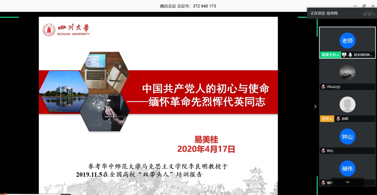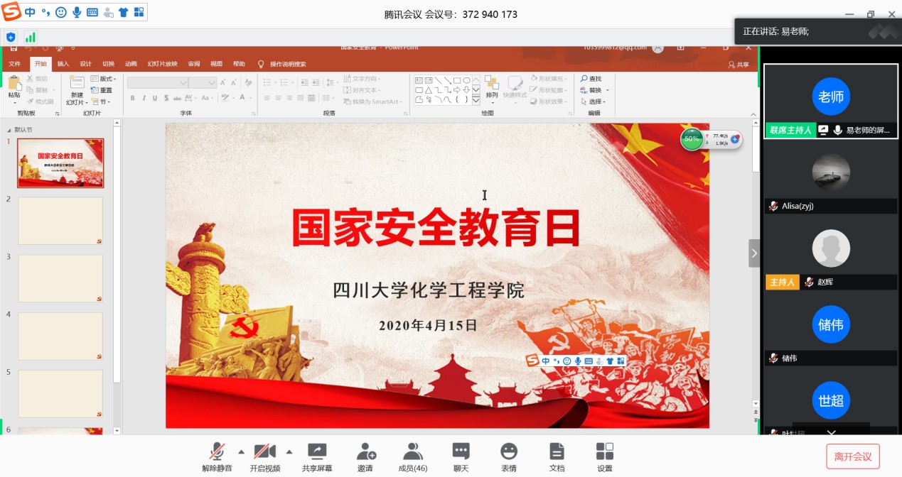 2020年4月17日下午,我院化工系通过线上视频会议召开了“4·15”国家安全教育主题活动、政治学习暨党组织生活。会议由化工系党支部书记易美桂教授主持,化工系全体老师参加了“4·15”国家安全教育主题活动和政治学习,全体党员老师参加了党组织生活。