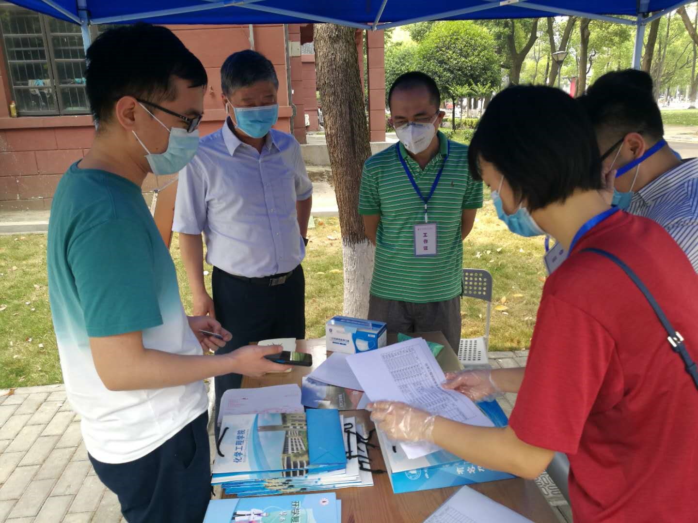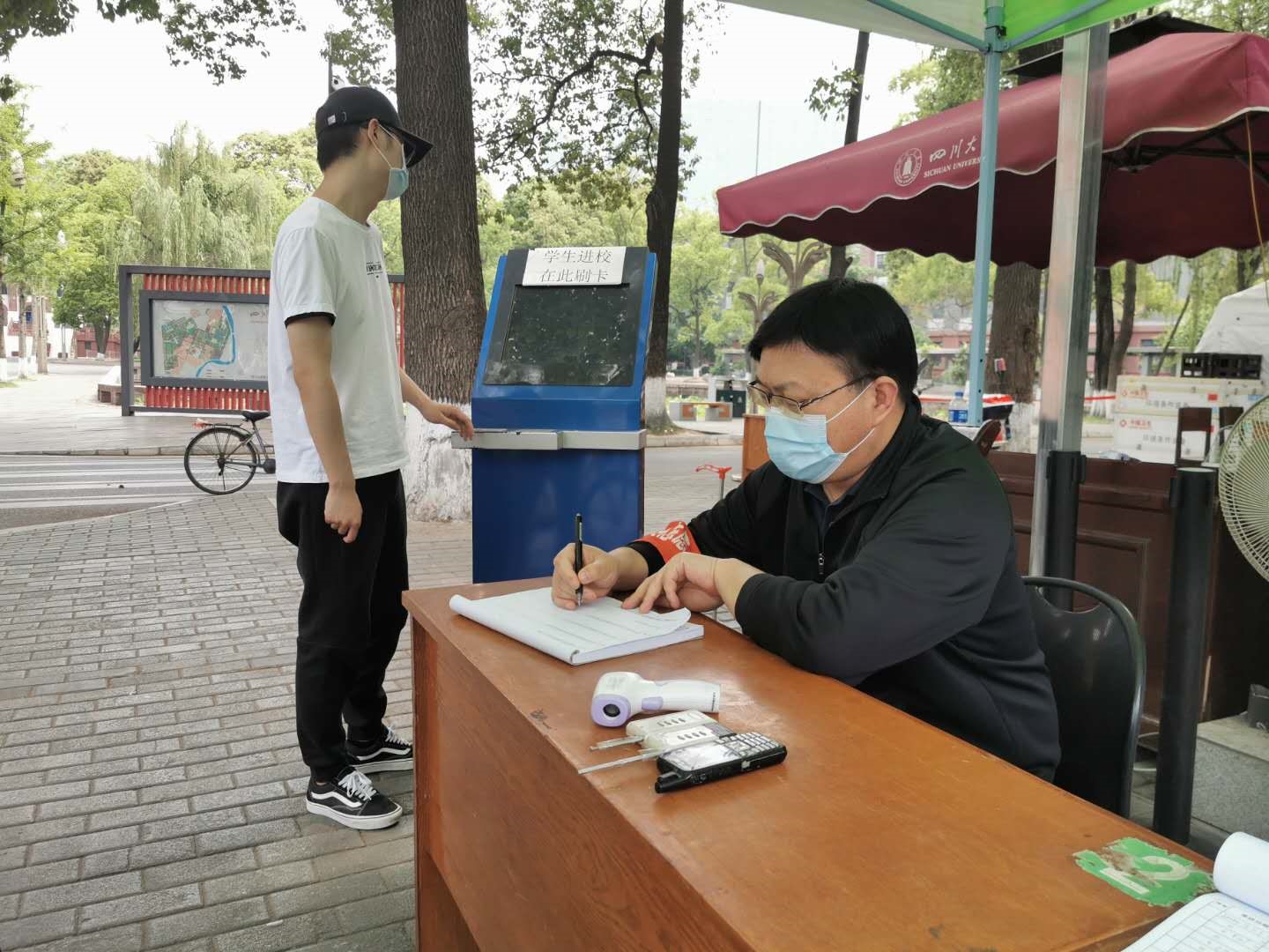 2020年5月6日,根据四川省教育厅以及学校下发的返校工作整体方案,川大学子正式分期分批、错时错峰返校,化工学院也迎来了第一批学生返校高峰。在学院总体部署和安排下,全面落实学校关于学生复学返校工作会的安排,提前做好了迎接680余名学生返校的准备工作。在学院规划建立了学生报到点,撑起遮阳伞,并为报到注册的化工学子们准备好了装满口罩、消毒液等各种防疫物资的健康包。学院教学楼前,新添置的移动消毒站和专门设置的出入口,保证了同学们安全有序的进入学院。在党员教师的示范带动下,化工系的全体教职工积极参与学生返校志愿者工作,每天3班轮流值守,分工合作、相互配合,细致认真做好返校学生的身份核验、体温检测、防疫消杀、健康码状态核实、行李搬运等志愿服务工作,为同学们返校提供全天候的服务。更重要的是,志愿者老师们关心返校的学生的心理和学业情况,为学生提供返校学习生活指导,为返校学生第一时间送去了安慰和温暖,以实际行动诠释了化工系党员教师良好的师德师风和责任担当。