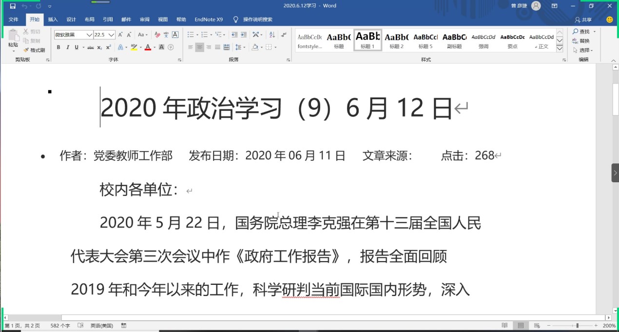 020年6月12日下午,化工系在线组织学习了李克强总理在第十三届全国人民代表大会第三次会议中所作的《政府工作报告》。化工系全体教师参加了学习交流。会议由化工系支部书记易美桂老师主持。