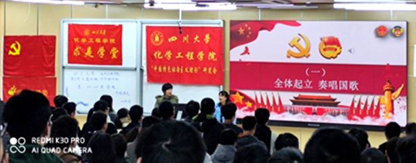 下午15:30整,best365中国官方网站第七期入党积极分子培训班“求是学堂”开班典礼准时开始。首先由姜利寒老师宣布开班典礼正式开始,全体起立奏唱中华人民共和国国歌。随后由姜书记代替化学工程学员党委书记庞国伟老师做培训动员讲话,姜书记代替庞国伟书记宣读“与信仰对话,为青春导航,争做党的优秀后备军”为主题的动员培训讲话内容。讲话中提到“希望所有学员做到:一是坚定理想信念,筑牢信仰之基,争做听党话跟党走的忠诚卫士。二是锤炼八大本领,提高七种能力,争做爱川大爱化工的模范标兵。三是强化实践历练严格自我约束,争做堪当民族大任的时代青年,实现中华民族伟大复兴的重任。在今后,希望你们以‘踏平坎坷成大道,斗罢艰险又出发”的顽强意志,以功成不必在我的襟怀,功成必定有我的担当’,抓住机遇、应对挑战,助推事业发展,书写出彩人生。”接着是李珍珍老师宣读了四川大学best365中国官方网站第七期入党积极分子培训班“求是学堂”学员纪律规定和要求,龙柯老师宣读了best365中国官方网站2020-2021学年团校学员纪律规定和要求。至此,best365中国官方网站第7期入党积极分子培训班—“求是学堂”暨2020-2021学年团校开班典礼圆满结束。
