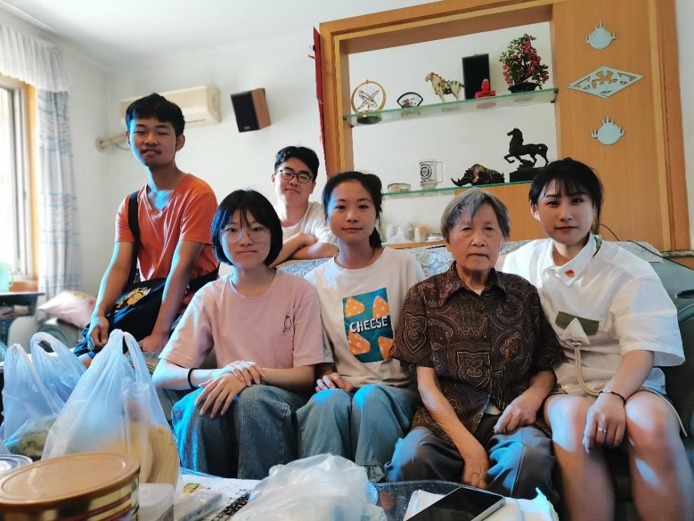 第二组六名同学前往吴旨玉老师家中拜访。吴旨玉老师退休前工作于化学机械组。吴老师向同学们回忆起她退休前的工作,向同学们表达了终身学习的重要性。同时,她也教导同学们在大学期间要注重基础知识的学习,要兼顾学习和实践,志愿者们在听了吴旨玉老师的讲述后都颇有感慨。