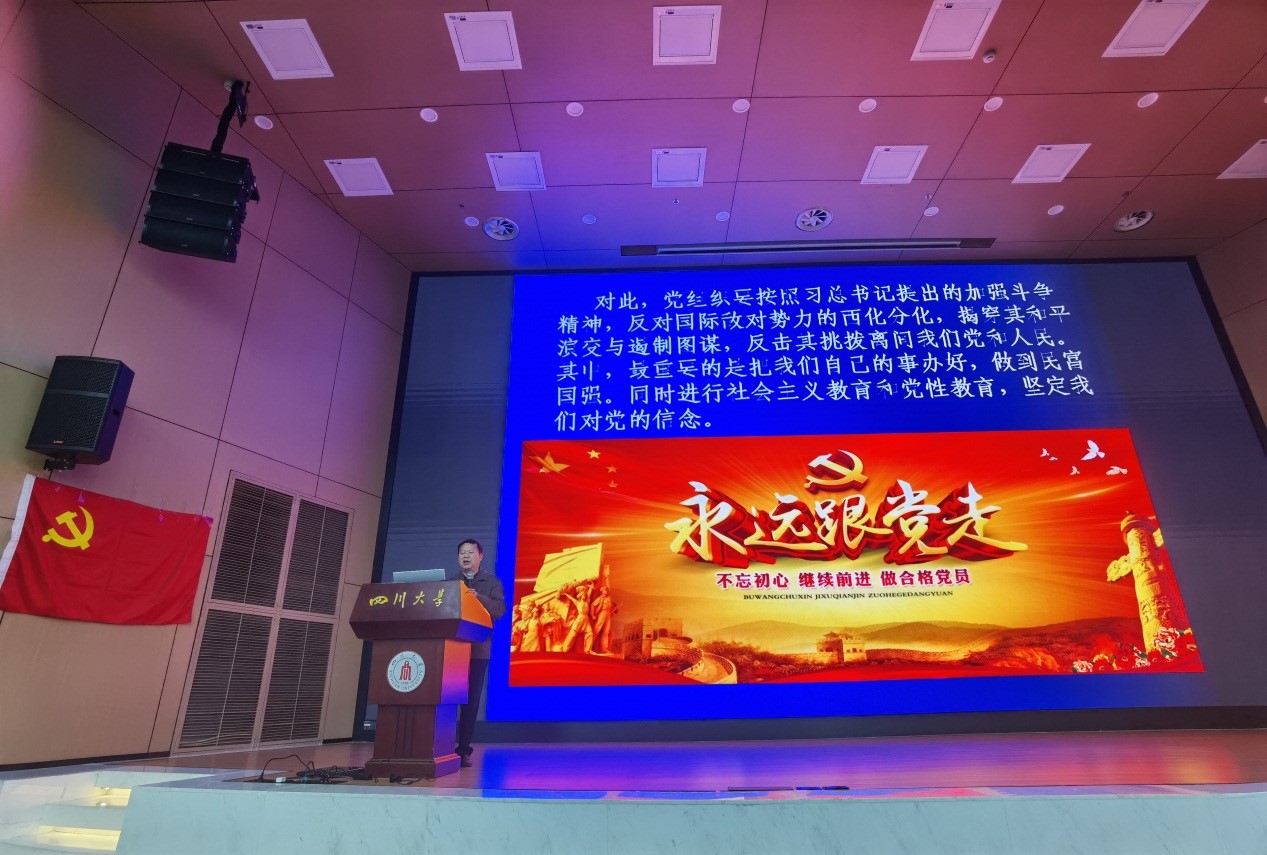 2021年10月30日下午三点整,四川大学best365中国官方网站、空天科学与工程学院、建筑与环境学院、艺术学院联合党校第151期发展对象培训班第二讲在四川大学江安校区水上报告厅顺利进行。本次课程由四川大学吴肇庆教授主讲,授课主题是“坚定对党和中国特色社会主义的信念”。