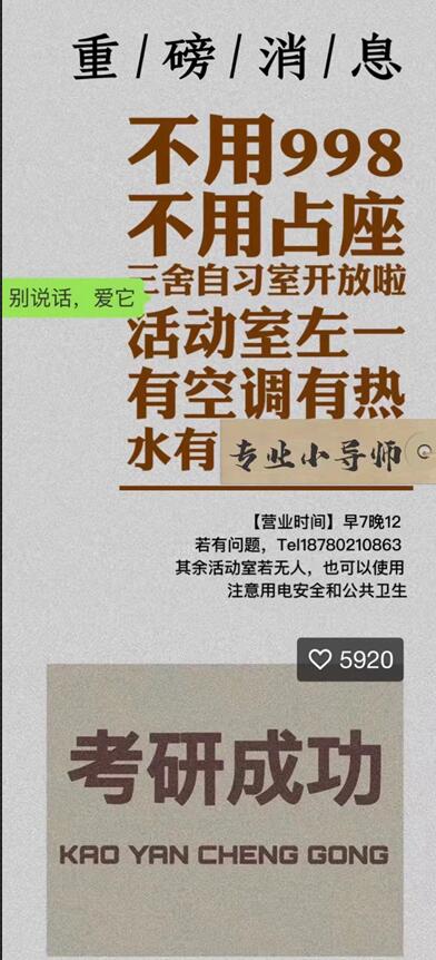 严冬虽至,人心尚暖,斗志依旧昂扬!相信在充满爱与关怀的自习室中,化工考研学子们也能一分耕耘一分收获,一战成硕,考研成功!
