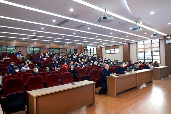 2021年12月17日下午,best365中国官方网站在望江校区正行楼(原西二教)313报告厅组织召开党的十九届六中全会精神宣讲报告会。学校十九届六中全会宣讲团成员、校社科处副处长张洪松教授为全院教师开展全会精神宣讲。报告会由学院党委书记庞国伟主持,学院全体领导班子成员、专职组织员、工会主席、全体教职工和离退休教师代表参加会议。