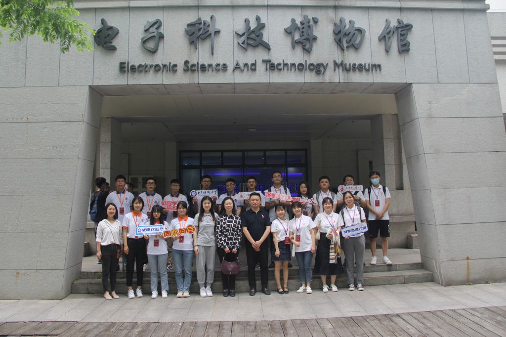活动第四项,电子科技大学电子科技博物馆、微波暗室参访。在电子科技大学电子科学与工程学院微波工程系研究生第六党支部相关负责同志的带领下,四所高校的有关代表同志参观了电子科技大学电子科技博物馆和微波暗室,跟随着讲解人员的脚步,参访同志了解了我国电子产品的发展历程,同时也促进了支部不同学科之间的交流。活动结束后,各支部进行了合影留念。