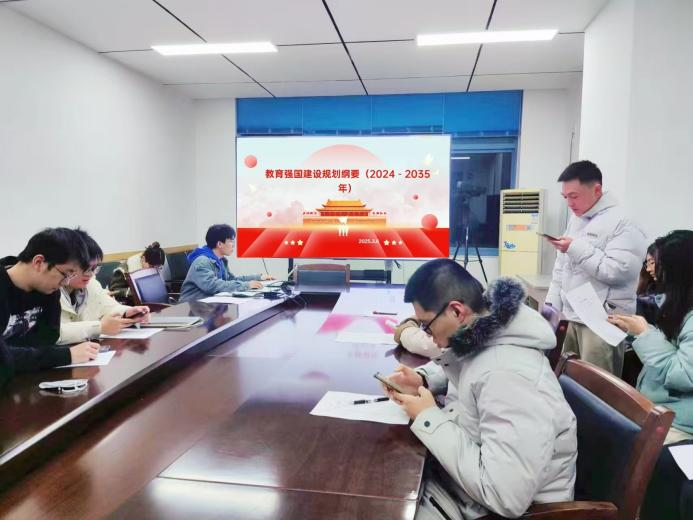 2025年3月7日晚19:00,研究生第五党支部在第一基础实验楼B220开展《教育强国建设规划纲要(2024-2035年)》专题学习活动暨组织生活会。本次会议由支部书记熊朝智同志主持,全体党员同志参加。