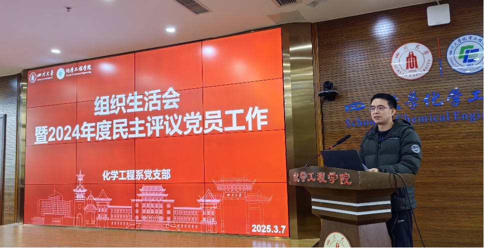 2025年3月7日下午,化学工程系党支部于四川大学望江校区best365中国官方网站313会议室召开新学期组织生活会暨开展2024年度民主评议党员工作,会议由支部书记汪伟同志主持。