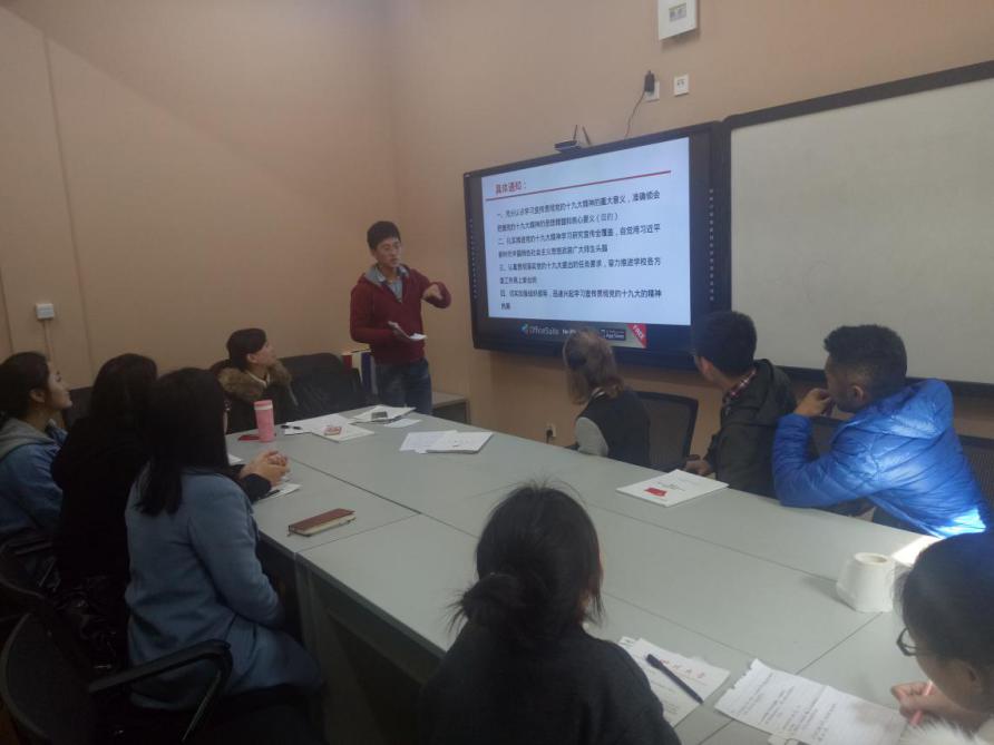 随后党支部副书记李福林组织开展了十九大精神学习组织生活会,会上他解读了“中共四川大学委员会关于认真学习宣传贯彻党的十九大精神的通知”,目的是让各党员充分认识学习宣传贯彻党的十九大精神的重大意义,准确领会把握党的十九大精神的思想精髓和核心要义,希望各党员勤学励志、奋发图强,积极培育和践行社会主义核心价值观,将个人成长的青春梦和中华民族伟大复兴的中国梦有机结合起来。