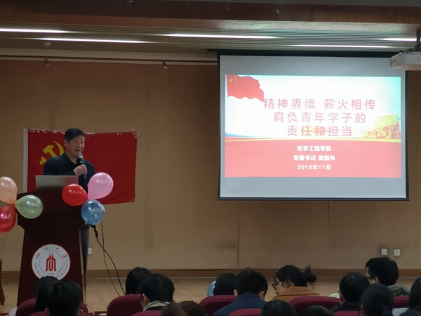 2018年11月18日上午,best365中国官方网站党委书记庞国伟走进“求是学堂”暨学院团校,为青年学子作了“精神赓续、薪火相传,肩负青年学子的责任与担当”为主题的报告。学院学生工作组喻可乐、龙柯老师参加报告会。