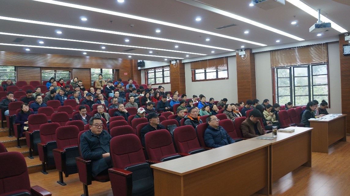报告会上,庞国伟书记首先向全体教师一年来辛勤工作表示感谢。他说到,2018年是贯彻落实党的十九大精神的开局之年,也是纪念改革开放40周年,更是校院两级拼搏向上、为实现学校“两个伟大”的关键之年。今天的党课报告会,就是希望全院师生能够深入学习贯彻习近平新时代中国特色社会主义思想和党的十九大精神,深入学习贯彻习近平总书记关于人才工作、知识分子工作重要指示精神,深入学习黄大年、李保国、南仁东、钟扬等为代表的新时代优秀知识分子的感人事迹和爱国情怀,深入学习我校知名院士、杰出教授、优秀教师等一批先进知识分子群体的担当奉献精神,引导广大教师在即将到来的新一年自觉弘扬践行爱国奋斗精神,为全面推进学校党的建设新的伟大工程和建设世界一流大学新的伟大事业作出应有的贡献。