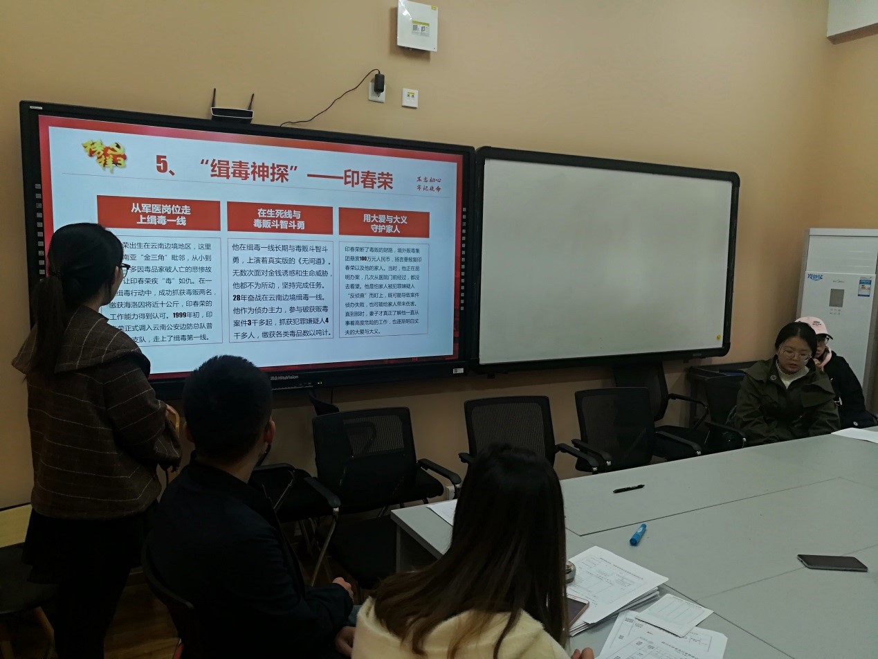 然后,党雨萌同志分享了对另外四位党员榜样:“‘缉毒神探’——印春荣”、“鲁家村‘火车头’——朱仁斌”、“‘超导’贤才——赵忠贤”、“国测一大队——大地英雄”的先进事迹的心得体会。重点说到不管什么人,在人类文明的长河中,作为一个中国人能去做一些贡献,这本身就是对国家的贡献。
