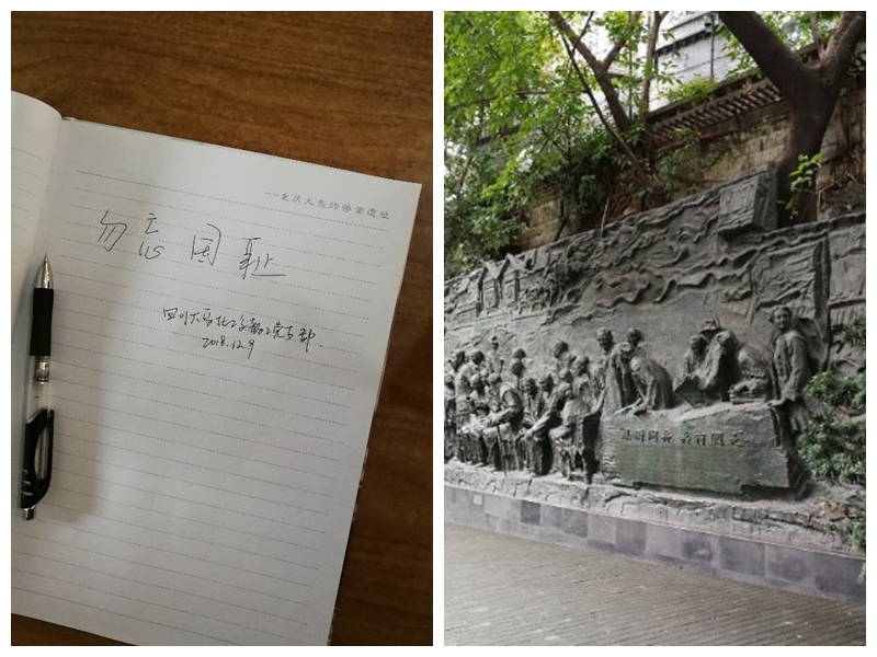 2018年12月9日,支部成员前往重庆大轰炸惨案遗址。1938年-1945年,重庆作为"国民政府"的陪都及政治、军事、文化中心,成为日军实施"以炸迫降"战略企图最主要的空袭目标。重庆大轰炸惨案遗址为了纪念在抗战期间空袭去世的人民而修建。当天下午,参观了桂园和特园中国民主党派立式陈列馆,桂园为著名的《双十协定》签订地点,重庆谈判期间,毛泽东同志在此接见民主人士。特园介绍了各民主党派的发展及它们与中国共产党风雨同舟、荣辱与共的光荣历史。在参观和学习中,我们充分认识到中国共产党领导的多党合作和政治协商制度的历史必然性,以及其伟大独创性和巨大优越性。我们作为四川大学best365中国官方网站的教职工,肩负着教书育人的责任,作为化工行业的从业者,肩负着为国家化工发展贡献的使命,我们应继续奋斗,为国家培养社会主义建设者和接班人。