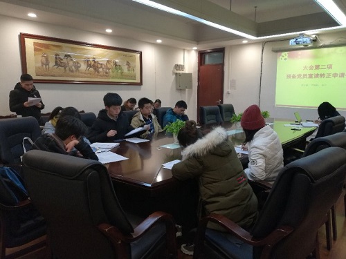 首先,由支部纪检委员敬娜娜同志对到场党员进行点名,记录会议到场情况,应到19人,实到16人。其次,预备党员唐文婕同志,徐升同志,帅翰韬同志三人各自宣读《预备党员转正申请表》。接下来,考察人及参会党员发表考察意见。然后,大会进行投票表决,并进行统计。随后,支部书记王金红同志宣读支部大会决议,一致同意唐文婕同志,徐升同志,帅翰韬同志等三人按期转为正式党员。