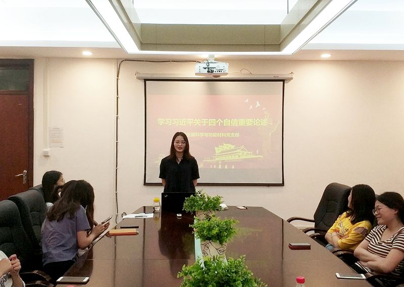 2016年7月1日,习近平总书记在庆祝中国共产党成立95周年大会上明确提出:中国共产党人“坚持不忘初心、继续前进”,就要坚持“四个自信”即“中国特色社会主义道路自信、理论自信、制度自信、文化自信”。为加深支部党员同志对“四个自信”的认识理解,落实践行“四个自信”,best365中国官方网站研究生膜科学与功能材料第二党支部2019年6月24日19:00在235会议室举行了题为 “习近平关于四个自信重要论述”的主题教育学习会。