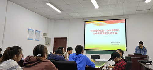 随后,党支部书记组织开展了关于吸收张俊、水永刚两名同学为预备党员的议程,两名发展对象逐一宣读了入党志愿书,并汇报了两人在思想态度、生活、学习等方面的突出表现,短短的几分钟,两名同学饱含深情的发言和发自内心的感触赢得了全场在座各位同志们的掌声。随后由入党介绍人根据发展对象的了解,分别总结各位发展对象的表现,说明对申请人的介绍理由和考察情况,表明了自己的意见。最后经支部党员充分讨论,以正式党员无记名投票方式对发展对象进行投票并现场逐一公布投票结果,张俊、水永刚2名发展对象得到支部大会的一致认可,燃烧动力学党支部决定正式接收他们为中共预备党员。