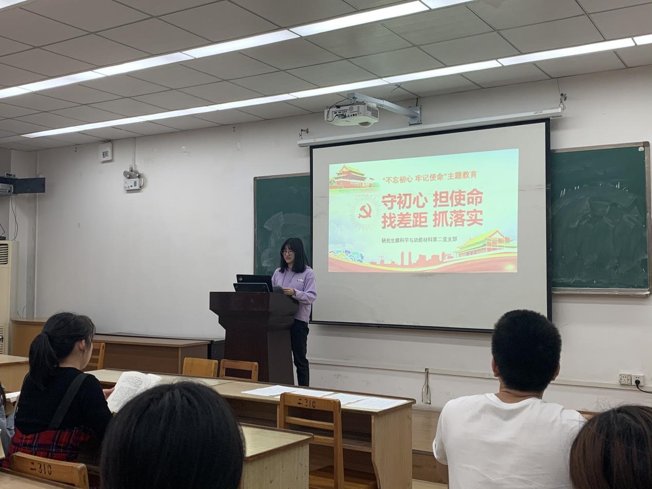 为贯彻落实中央决策部署和习近平总书记在“不忘初心、牢记使命”主题教育工作会议上的重要讲话精神,2019年10月22日晚18:30,膜科学与功能材料第二党支部全体党员在党支部书记李新娇同志的带领下在化工楼312会议室开展了以“守初心,担使命,找差距,抓落实”为主题的专题党课。