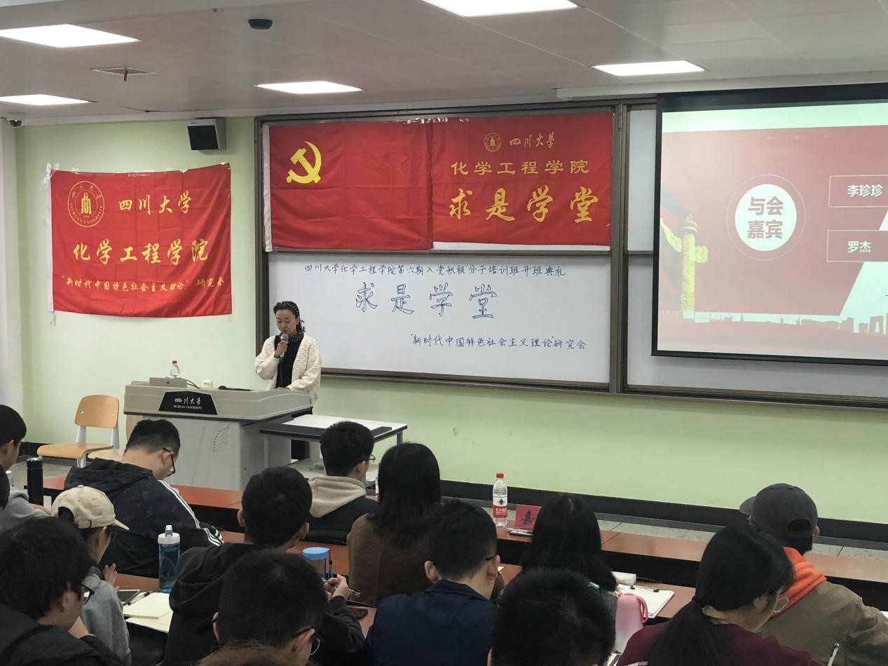 2019年11月16日上午九点三十分在江安校区第一教学楼B座B303教室,成功举办了四川大学best365中国官方网站“求是学堂”第六期入党积极分子培训班开班典礼。此次开班典礼由四川大学best365中国官方网站19级新生冯枭主持,best365中国官方网站李珍珍老师进行了主题为“不忘初心 明确责任担当,牢记使命 争当优秀党员” 的讲话,优秀学员代表18级学生陈凤进行了主题为“端正入党动机 争做时代新人”的发言。同时参会的还有best365中国官方网站优秀博士生代表罗杰和59位培训学员。此次培训的目的是以马列主义、毛泽东思想和中国特色社会主义理论体系为指导,学习贯彻党的十九大精神,加强党的基本理论和基本知识的培训学习,坚定共产主义理想信念,使学员进一步树立正确的世界观、人生观、价值观,端正入党动机,明确努力方向,以实际行动争取早日加入中国共产党。
