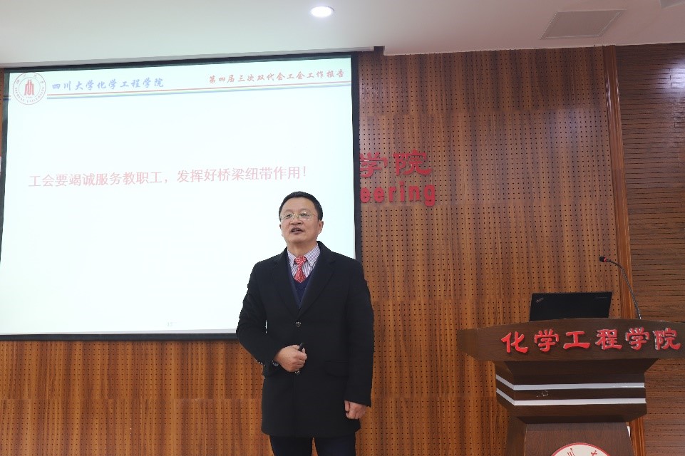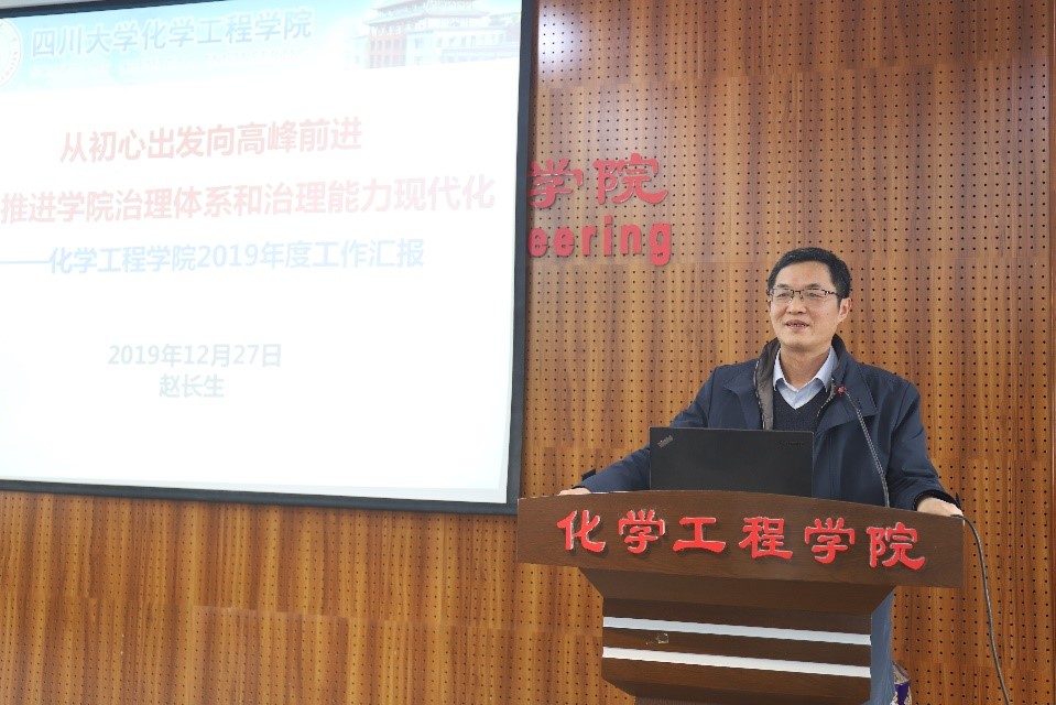 会议听取了院长赵长生同志代表学院所做的《学院工作报告》。赵院长在报告中全面回顾和总结了2019年全院工作。学院全体师生深入学习贯彻习近平新时代中国特色社会主义思想和党的十九大及十九届历次全会精神,科学研究、人才培养、党建工作和队伍建设等方面都取得了显著成就:化学工程学科在2019“软科世界一流学科排名”中排名第31位;获准建设“空天动力燃烧与冷却教育部工程研究中心”和“四川大学互联化工研究中心”;化学工程与工艺、制药工程2个专业进入全球工程教育“第一方阵”;新增6名国家级高层次人才;“读懂中国”征文获得教育部关工委最佳征文。随后,赵院长代表学院对全院师生员工和离退休老同志在过去一年对于学院工作的帮助和支持表示感谢。接着,结合学校“两个伟大”和全面推进治理体系和治理能力现代化,提出了2020年的工作展望。