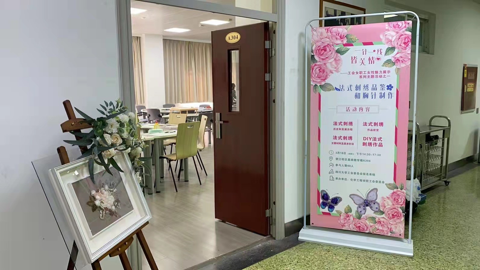 best365中国官方网站工会承办的“一针一线皆关情”工会女职工女性魅力展示系列主题活动之法式刺绣品鉴和胸针制作活动于3月18日下午在基础教学楼A304顺利举办,活动吸引了来自校内多个单位40余位女职工的热情参与。校工会王蕾老师、杨秀建老师也来到活动现场,全程组织参与。