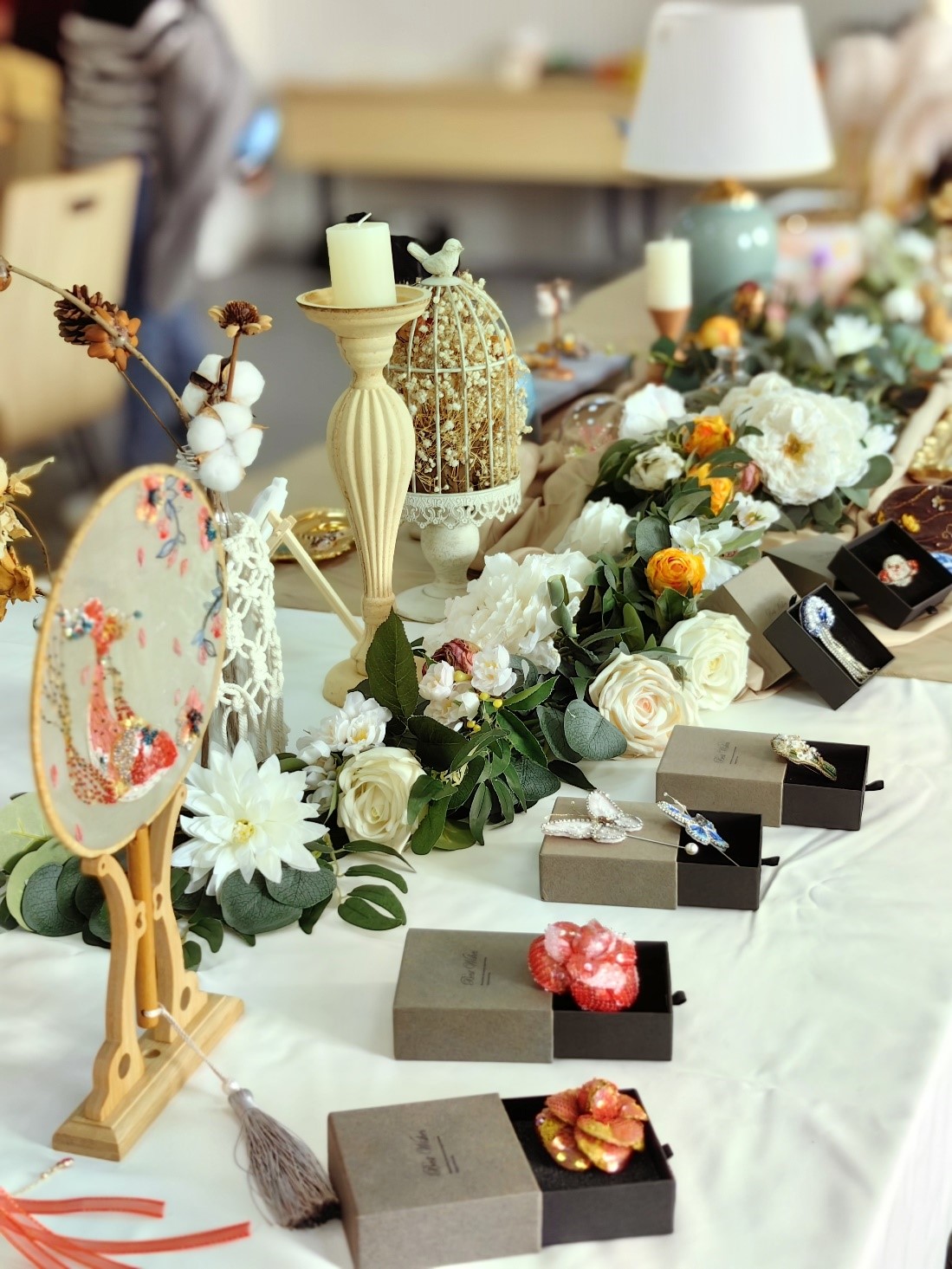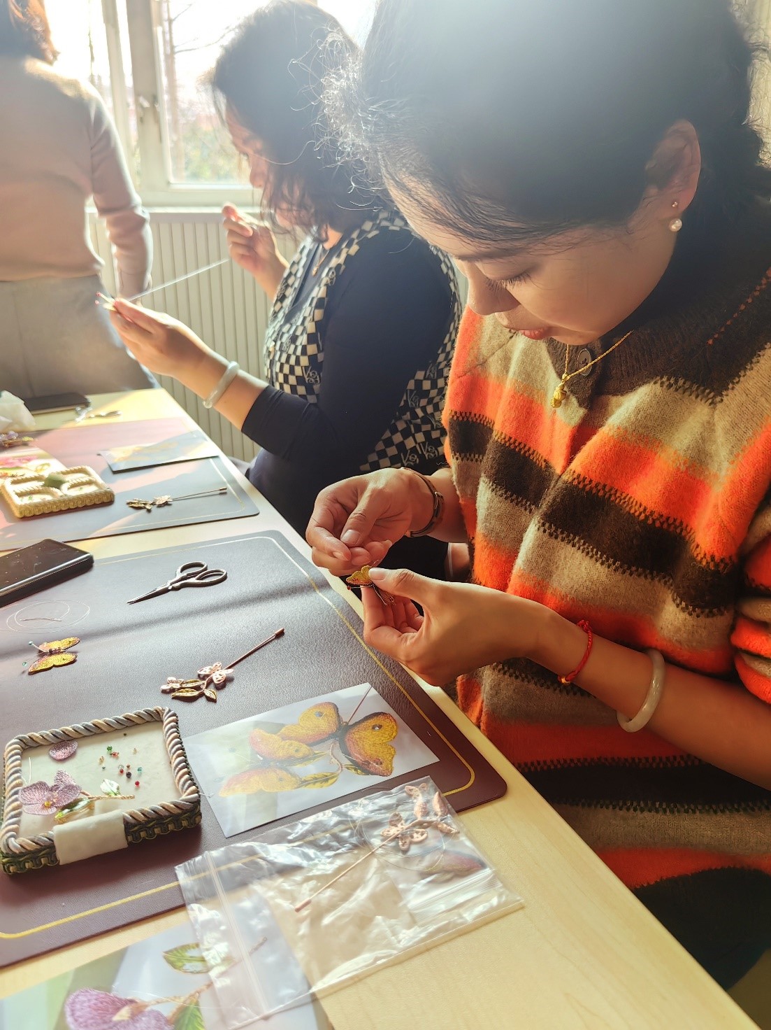 活动得到了四川大学工会和吾同高定文化传播有限公司的大力支持,大家为活动的顺利开展精心布置场地,营造了温馨、高雅的氛围,让参与的女职工倍感亲切和愉悦。来自吾同高定文化传播有限公司的五位老师带领女职工们了解法式刺绣的历史和发展过程,学习品鉴法式刺绣作品,并现场制作精美的胸针。大家兴趣盎然、跃跃欲试,在老师们的指导下纷纷制作出了独一无二的作品。
