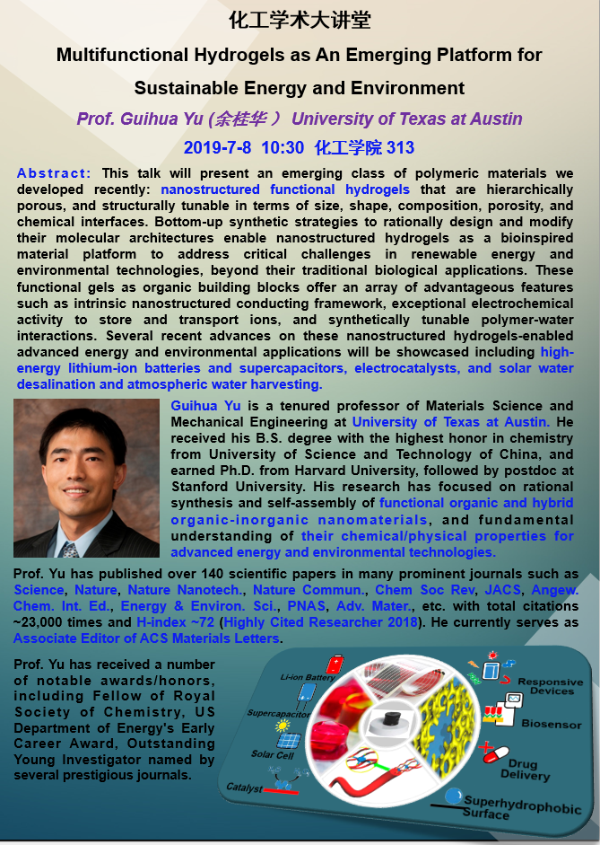 “化工学术大讲堂”系列高端学术报告学术报告(第六十六期)
