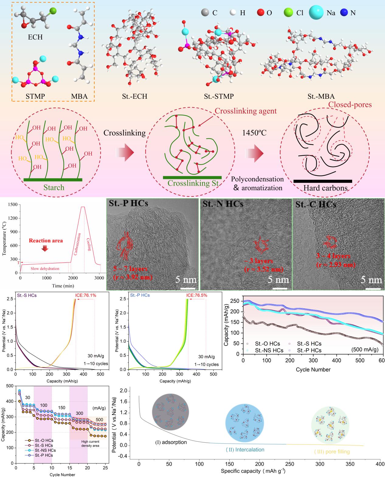 以生物质(如淀粉、纤维素、木质素)和低附加值石化产物(如沥青、石油焦、针状焦)为前驱体,通过化学调控与结构设计,结合相应的碳化工艺,构建具有丰富微纳孔结构的软/硬碳材料,并将其应用于高性能钠离子电池负极。研究内容主要包括:(1)前驱体的筛选与化学改性;(2)碳化过程中裂解行为的机理研究;(3)钠离子存储机制的深入探索与扩展。