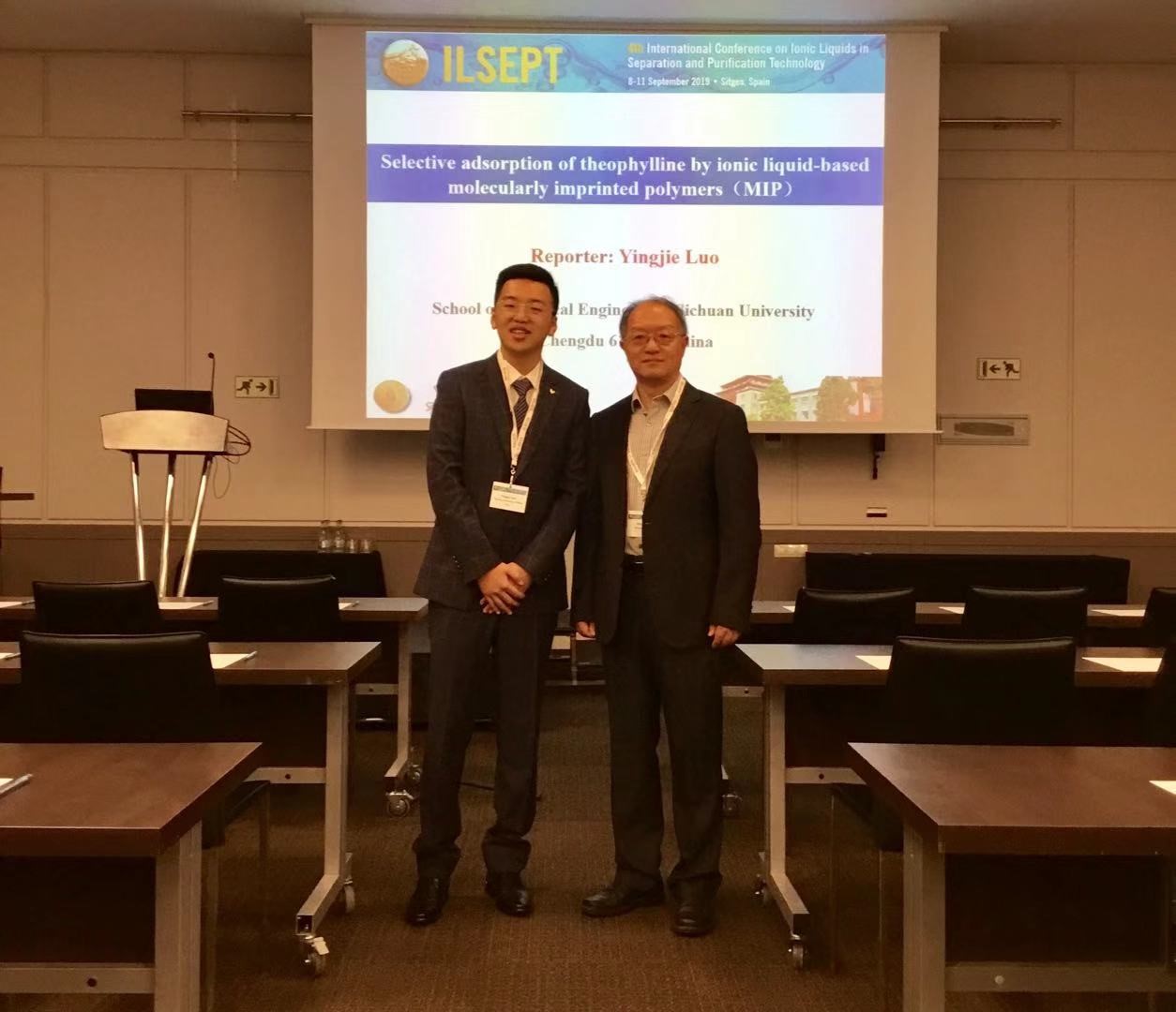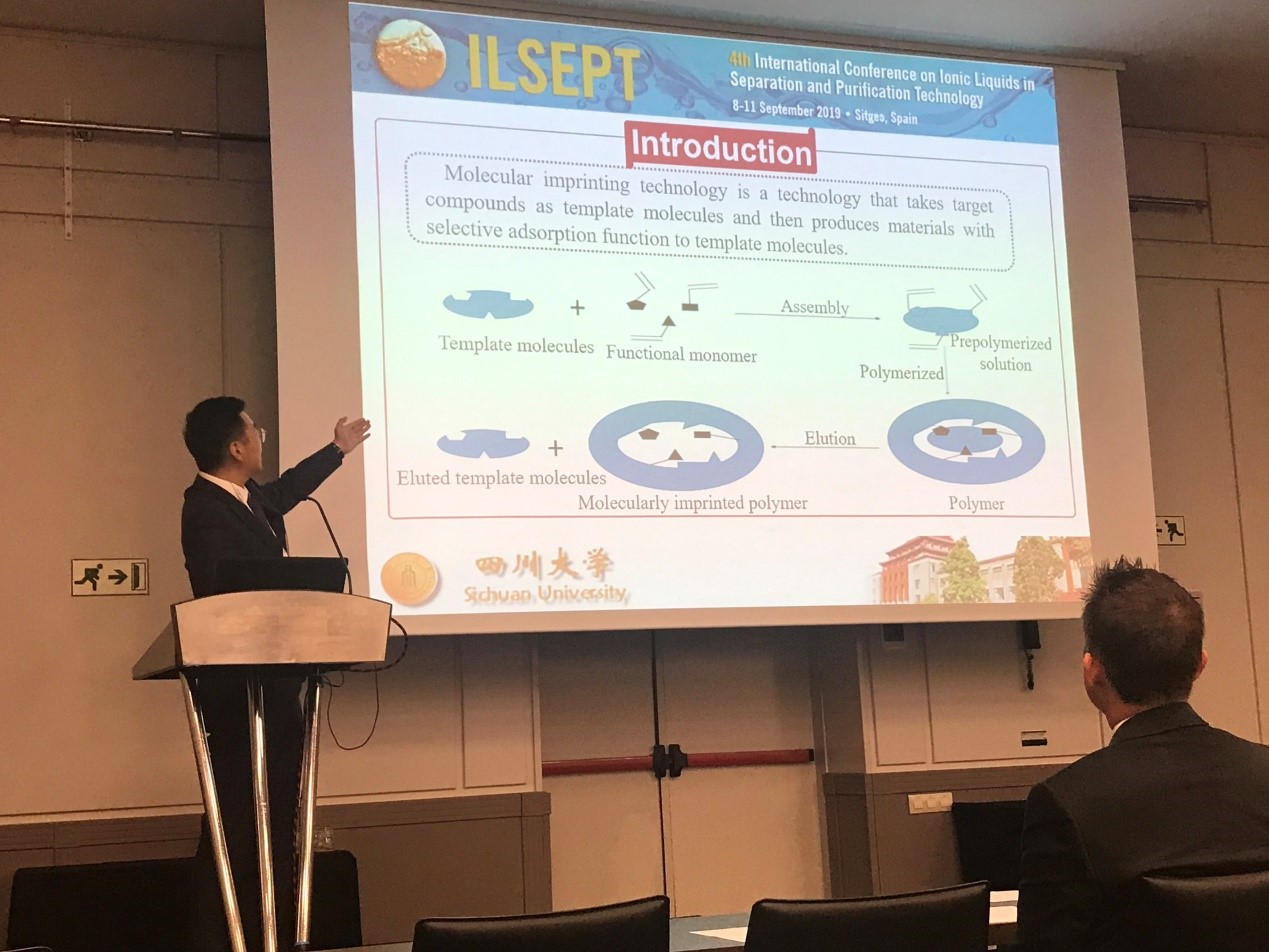 2019年9月8日—9月11日,第四届离子液体分离纯化国际会议于西班牙巴塞罗那顺利召开。我院制药工程专业二年级博士研究生罗英杰(指导教师:宋航教授)出席该会议并于大会上作题为“Selective adsorption of theophylline by ionic liquid-based molecularly imprinted polymers(MIP)”的研究报告。本次会议吸引了300多位来自世界各地从事分析化学、材料物理、物理化学、化学工程等不同研究领域的研究员、科学家、工程师和学者,是我们学院学子和国际高水平专家面对面交流的难得机会。
