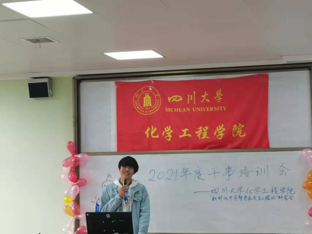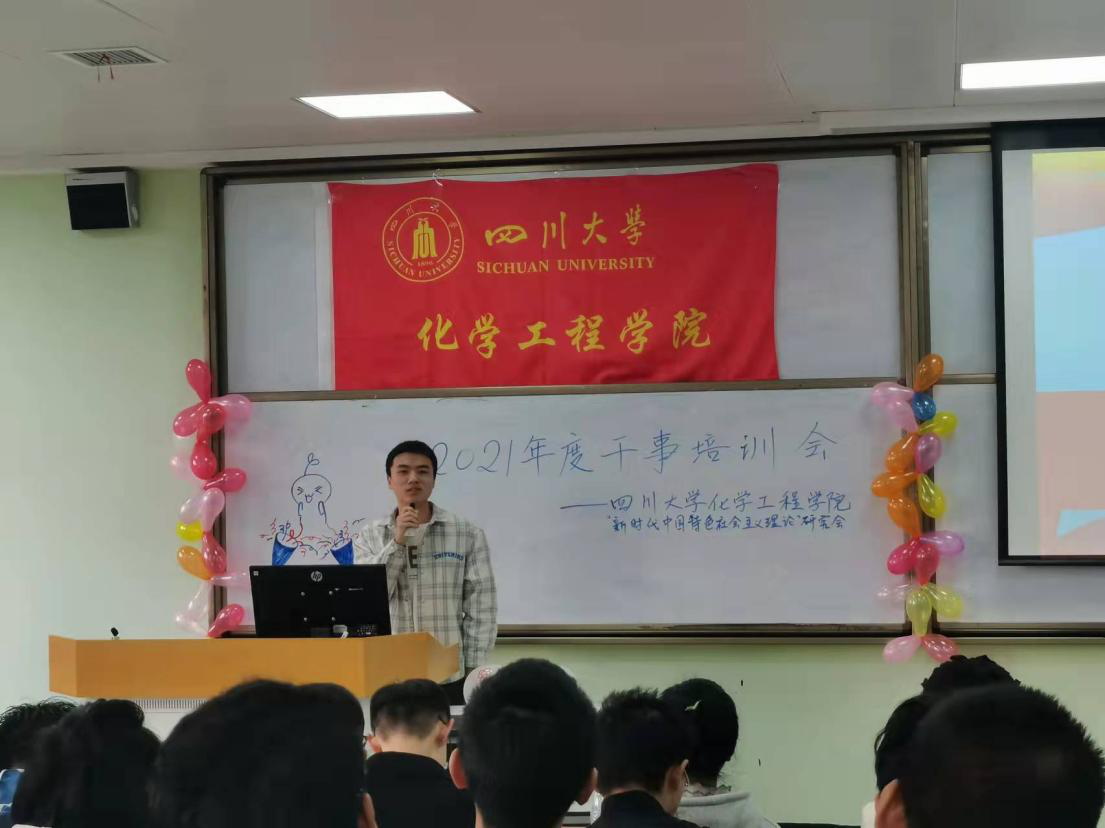 2021年10月31日星期日上午9:00,四川大学best365中国官方网站“新时代中国特色社会主义理论”研究会2021年度干事培训会于江安校区一教B座302室顺利举行,与会嘉宾有“新中会”指导老师雷金凤老师,现任会长及各部门部长,参与成员为best365中国官方网站“新中会”2021届全体干事及上一年度受表彰人员。本次干训会旨在让新任干事对今后的工作有更加深入的了解,继续发挥优良传统,在工作上能百尺竿头,更进一步。
