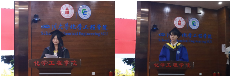 毕业本科生学生代表付珺瑶(左)和毕业研究生学生代表任俊宇(右)讲话