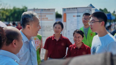 四川大学校长汪劲松和新生热切交谈