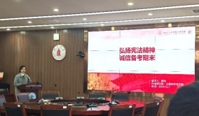 程攻重点从思想和学习两个方面进行讲解。他从宪法的基本知识入手,讲解宪法的成立与发展,并从宪法的地位和作用来进一步展现宪法对于我国的重要性。程攻还以宪法为引,告诫在座同学要诚信考试,最后分别从公共课和专业选修课给出学习和备考的建议以及经验。宣讲结束后主持人刘佳毅组织在场人员填写调查问卷。
