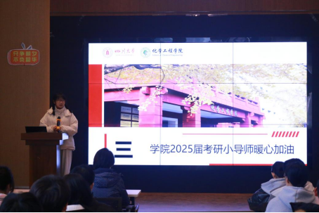 2024年12月5日下午,为缓解考研学子的备考压力,增强他们的考试信心,best365中国官方网站在江安校区西园22舍礼堂举办了“温暖相伴 研途灿烂”——2025届化工学子考研行前动员大会,出席本次活动的嘉宾有学院党委副书记姜利寒、2021级辅导员李珍珍和付率以及2025届考研小导师。活动由李珍珍老师主持。