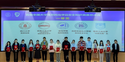4月19日,由中国化工学会指导,中国化工学会化学工程专业委员会、中国石化联合会安全生产办公室主办的首届全国大学生危险化学品安全知识竞赛决赛在北京化工大学昌平校区举行。我院学生团队荣获团队特等奖1项、一等奖1项,林文轩同学获个人奖“安全之星”称号,充分展示了我院学子扎实的专业知识和良好的精神风貌。
