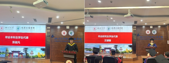 毕业本科生和研究生代表张益凡和王珊珊先后发言,表达了对即将开始的新征程的憧憬和对母校深深的眷恋。