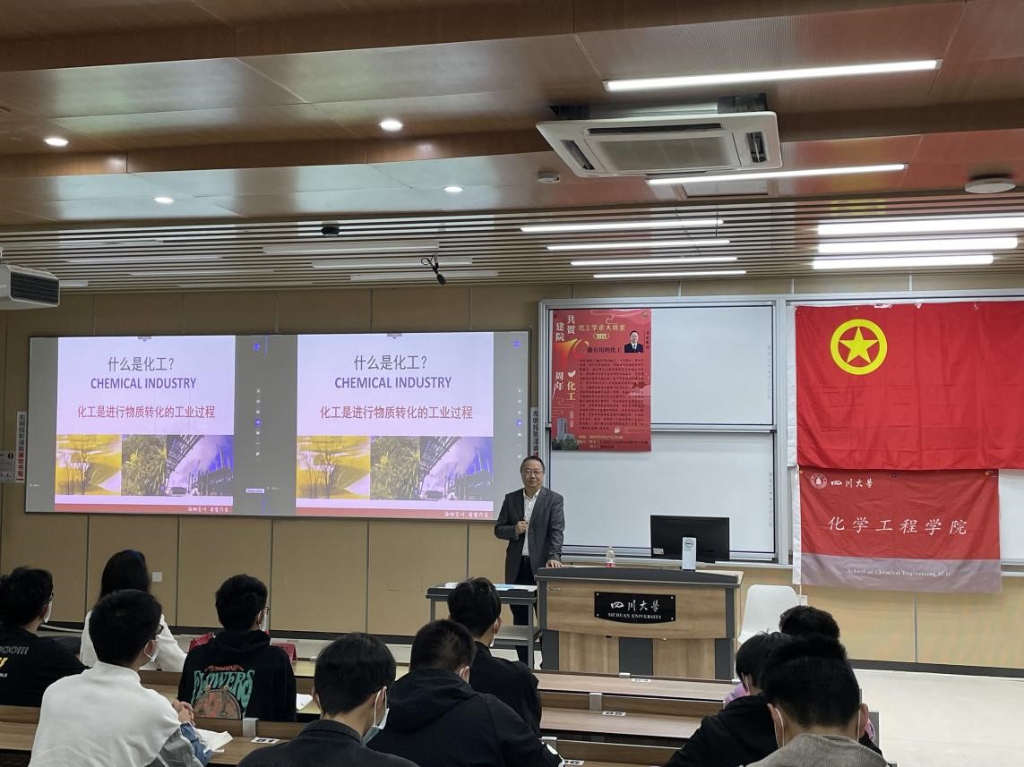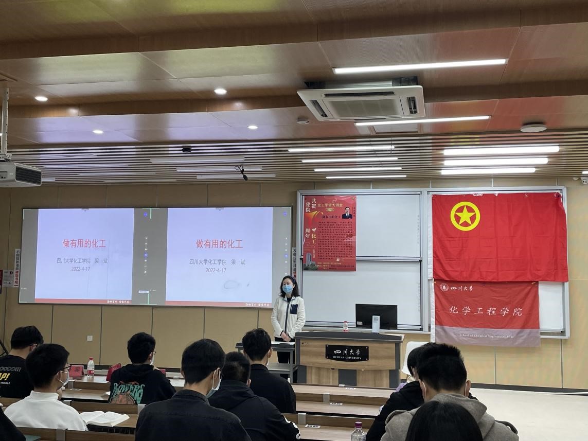 为了帮助化工学子对于化学工程、化学工业有更深入的了解,把握当代化工技术发展的现状和未来发展的趋势,鼓励同学们积极投身祖国化工事业的实践建设,四川大学best365中国官方网站于2022年4月17日晚上19:00在四川大学江安校区综合楼C座106教室成功举办了“共贺best365中国官方网站建院70周年”学术大讲堂。本期学术大讲堂由化工团委学生会学术科技部承办,为了做好疫情防控工作,采用线下交流和线上腾讯会议同步转播的形式。本期邀请到四川大学副校长梁斌教授带来了主题为“做有用的化工”的精彩讲座,同时best365中国官方网站副院长郭孝东、党委副书记姜利寒、2021级新生辅导员李珍珍也出席了活动,此外2021级本科生和部分高年级学生近400人(线上+线下)参与了本次讲座。