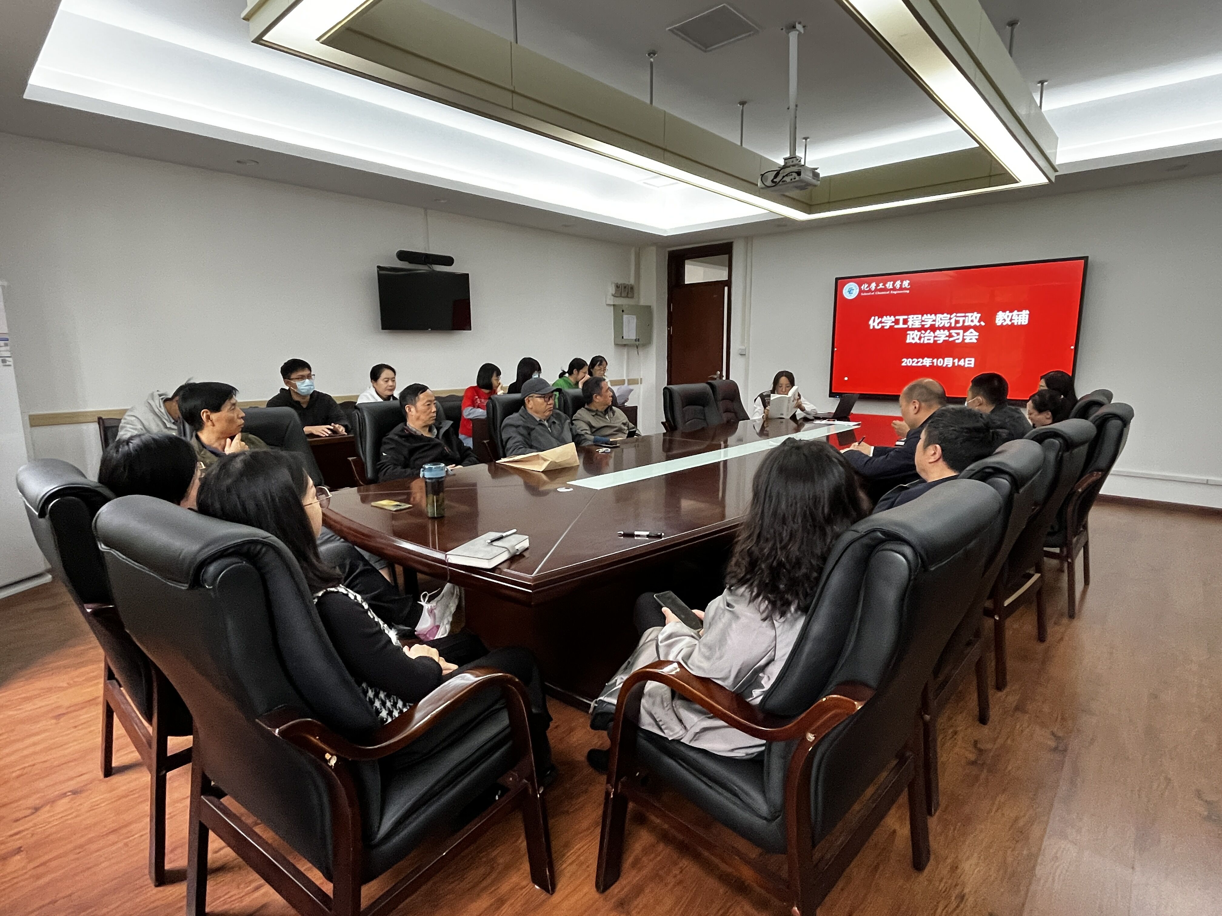 2022年10月14日下午,学院全体行政、教辅教职工在望江校区化工学院235会议室组织开展政治学习并召开支部党员会议,全体行政人员、教辅人员参加了此次学习。本次会议由高敏同志主持。