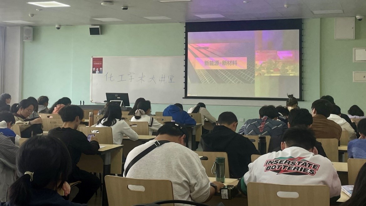 本次讲座中,郭院长从化学工程的历史沿革、时代与机遇、“新能源+新材料”、化学工程的本质与未来、学子寄语五个方面展开。