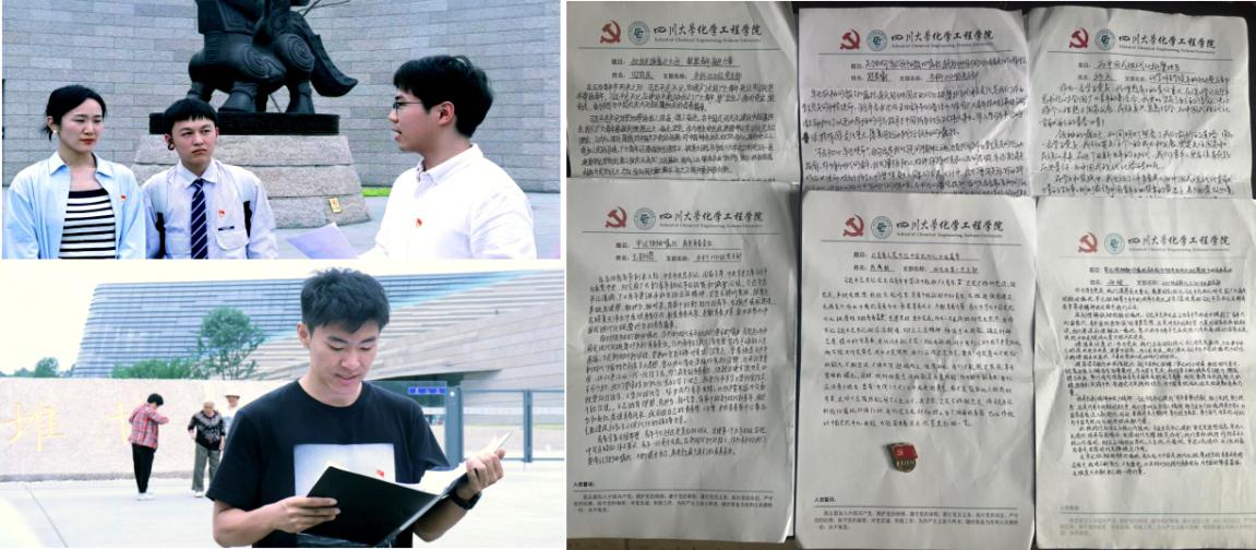 图2为学生党员周一山(上)江姐班党员张益凡(下)分享感悟以及手写心得体会照片