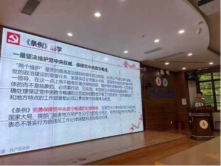 党支部书记王坡同志为支部同志进行了本次专题党课的详细内容讲解,强调了学习《条例》的重要性和紧迫性。《条例》总结了全面从严治党的理论与实践,与时俱进地完善纪律规范内容。《条例》坚持问题导向,针对干部群众反应的形式主义、官僚主义等问题均进行了处理完善,其中第一百二十六条强调了对于群众生产、生活等切身利益的问题解决不及时、造成不良影响的党员处置办法,充分保护了群众利益,符合中国共产党以人为本的宗旨,做到了全心全意为人民服务,有利于构建和谐社会。