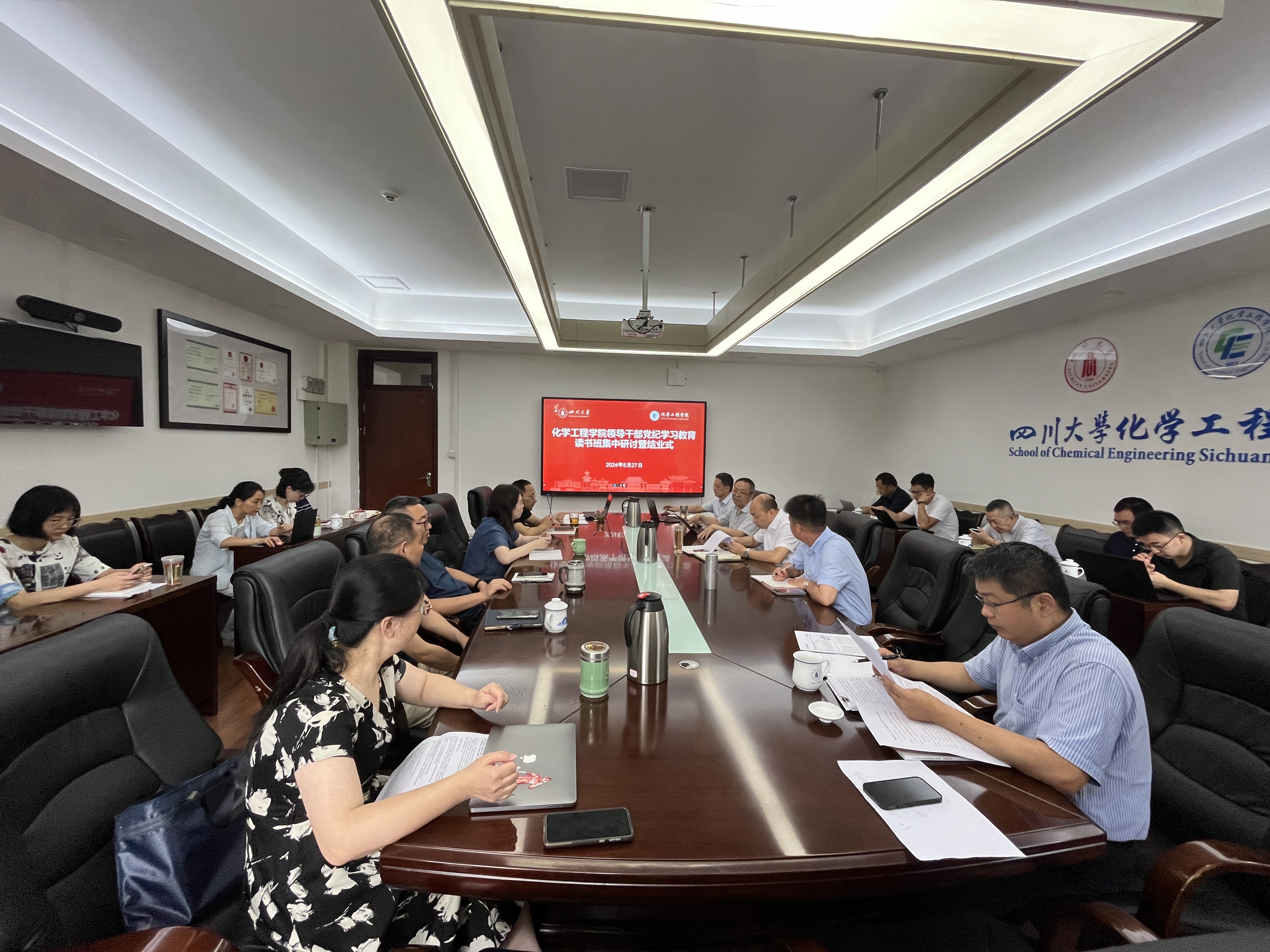 5月27日,best365中国官方网站领导干部党纪学习教育读书班集中研讨暨结业式在望江校区化工楼235会议室举行。学院领导班子成员、党委委员、工会主席、专职组织员、教工支部书记、系主任、院长助理和各科室负责人参加学习。学院党委书记李天友主持会议并作结业总结讲话。