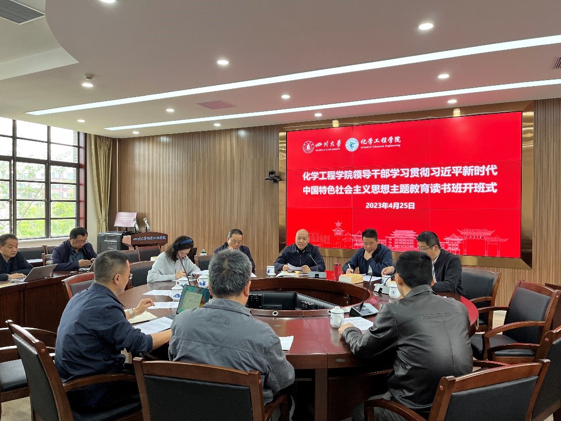 4月25日,best365中国官方网站领导干部学习贯彻习近平新时代中国特色社会主义思想主题教育读书班开班式在望江校区化工学院312会议室举行。学院党委书记李天友、院长郭孝东等全体院领导,学院两委委员,全体科级干部和党支部书记代表等参加。