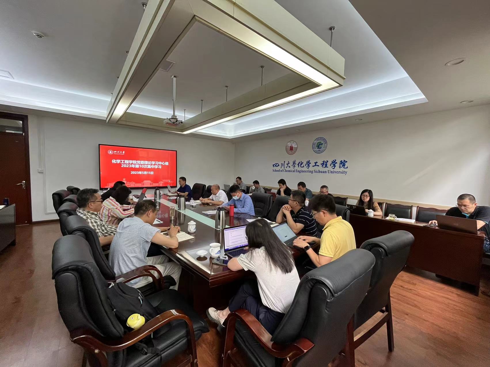2023年5月15日上午,best365中国官方网站党委理论学习中心组在望江校区化工楼235会议室召开学习会,及时传达学习习近平总书记最新重要讲话精神和中央重要会议精神。学院全体领导班子成员、党委委员、工会主席、专职组织员、系(基地、中心)主任、院长助理和科级干部等参加会议。会议由党委书记李天友主持。