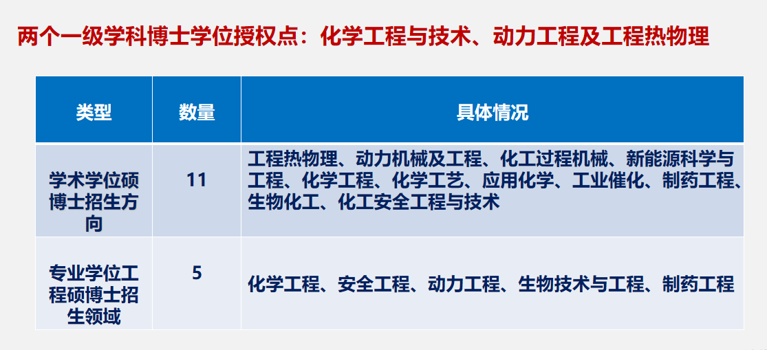 工程博士培养是以实践创新为导向,培养具备解决复杂工程技术问题、进行工程技术创新以及组织实施高水平工程技术项目等能力的专业型领军人才;使工程博士学位获得者具有化学工程技术领域坚实宽广的理论基础和系统深入的专门知识;具备把握产业和工程技术发展方向、规划和组织实施工程技术研究开发工作的知识与能力;在推动产业发展和工程技术进步方面作出创造性成果。